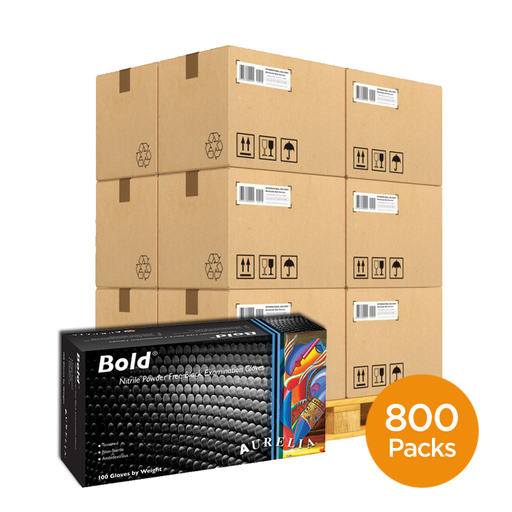 This is a pallet deal of 800 Packs of Gloves (80 Cases) Aurelia Bold is a premium quality Black Nitrile examination glove that offers greater tensi...