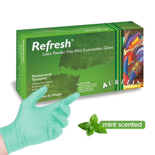 The Aurelia refresh is a latex-based powder-free glove that has been infused with a mint scent. Ideal for Dentists and health professionals to prov...